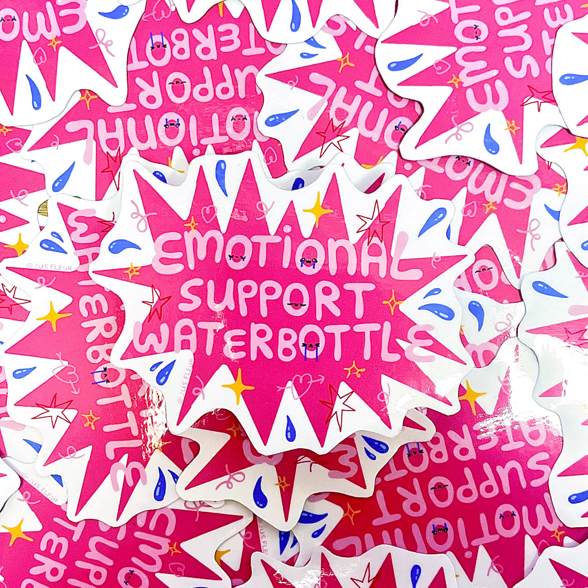 'Emotional support waterbottle' est l'autocollant parfait pour décorer la bouteille d'eau qui se suit partout comme ton ombre.